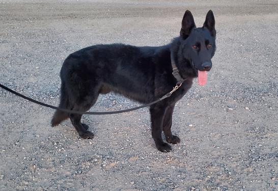 Zorro is our handsome solid black 80lb AKC German Shepherd. He is intelligent, friendly, full of energy, loves to play, and has solid nerves. Zorro comes from a pedigree of working titled dogs including numerous SchH3 titles and 3X WUSV World Champions.