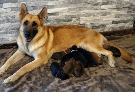 These adorable AKC German Shepherd Puppies were born 3/24/26. They will be available to go to their new home on 5/19/26. They will be intelligent, loyal, protective, great with children, and eager to please! Dad is a handsome solid black coat with numerous ScHH3 titled working dogs in his pedigree and 3X WUSV World champions. Mom is a gorgeous sable AKC German Shepherd with SchH3 titled working dogs in her pedigree along with 2X VA1 titled Larus von Batu and 2X VA1 titled Yasko vom Farbenspiel. A $600 deposit is required to hold one of these amazing little pups that would be applied to a total purchase price of $2,000. We accept cash, check, or Zelle for deposits. Call or text 480-250-2206 if you would like to a schedule a time to meet them.